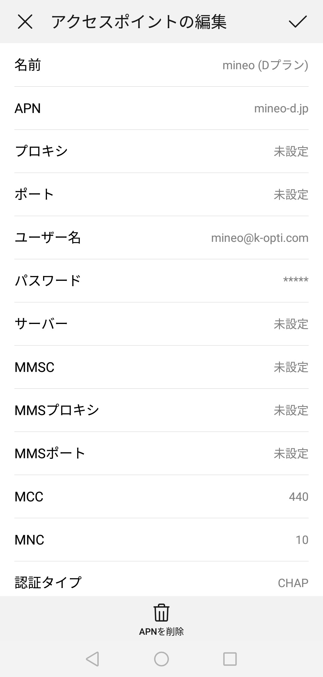 以前はSIMフリー機の場合、mopera Uの契約が必要だったが、今となっては不要なのだ。APNリストの中にはmineo(Dプラン)のAPNがあった。