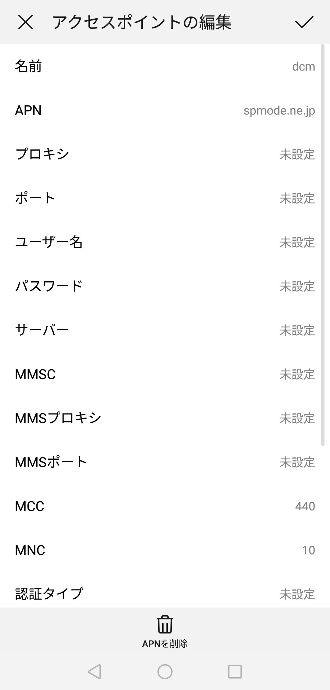 | APN設定 | 設定しない | spmode.ne.jp を新設 |